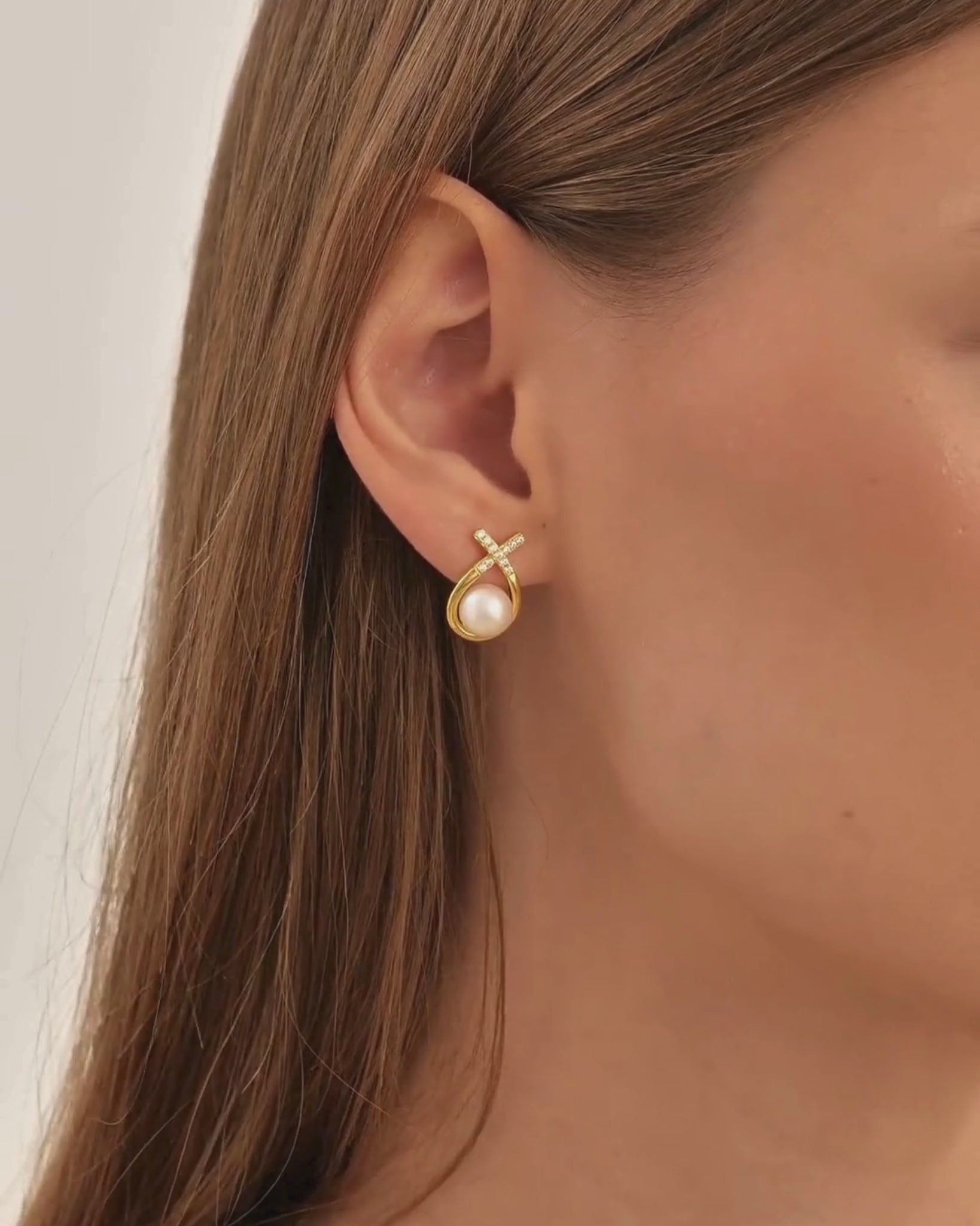 These Pearl Ribbon Earrings feature a pair of 8mm organic freshwater pearls framed by a fluid gold vermeil loop, topped with a delicate pavé ribbon of white topaz. They feel like a little celebration—effortlessly polished, elegant, and made to glow with you from day to night.